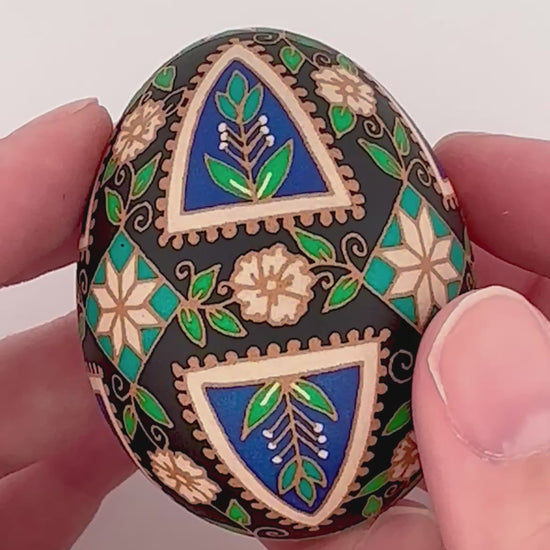 This handmade pysanka can last decades with simple proper care. Always store and display out of direct sunlight to prevent fading. Avoid water and dropping.